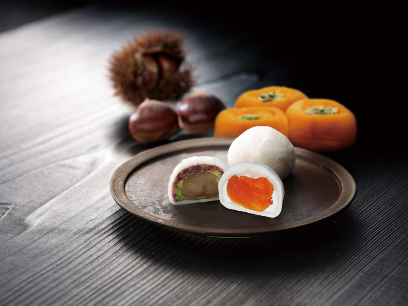 大粒の渋皮栗を栗餡で包んだ栗尽くし大福。